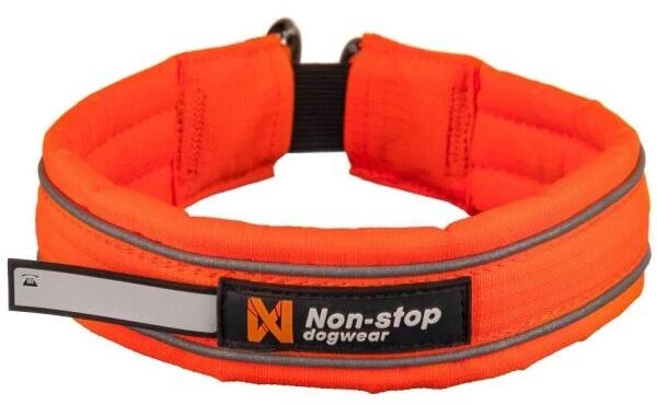 A Non-stop dogwear SAFE COLLAR kutya nyakörv kifejezetten a szabadba, a bokorba stb. járó kutyák számára lett kifejlesztve. Mentő- és vadászkutyák számára ideális. A nyakörv egy bevarrt gumival rendelkezik, amely lehetővé teszi, hogy a kutya ki tudja húzni a fejét a nyakörvből, ha az akadályba, ágba, ketrecbe stb. akadna. Amikor a kutya pórázon van, a gumi ki van kapcsolva, és a nyakörv szoros, nem lehet a fején áthúzni. A nyakörv vaskos, így még a vastag szőrű kutyákon is szépen látható. A jellegzetes szín a fényvisszaverő elemekkel együtt biztosítja a kutya láthatóságát még nagy távolságból is.